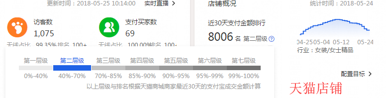 天猫店铺是按百分比分层,而淘宝店铺是按成交金额进行分层。但是他们都是以近30日的支付宝交易成交金额进行计算。所以在这里要提醒大家一点,你的店铺的好坏,流量的多少不是取决于你做了多久店铺,而是近期30日中你的店铺情况,再说的简单点,就是你今天和三十天之前的店铺相比是否有提升!