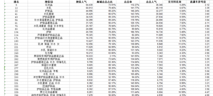 比如说我们刚才举例的是商品所在的子叶类目为面部护理套装,那我们需要去统计下最近7天面部护理套装类目的热搜关键词。
