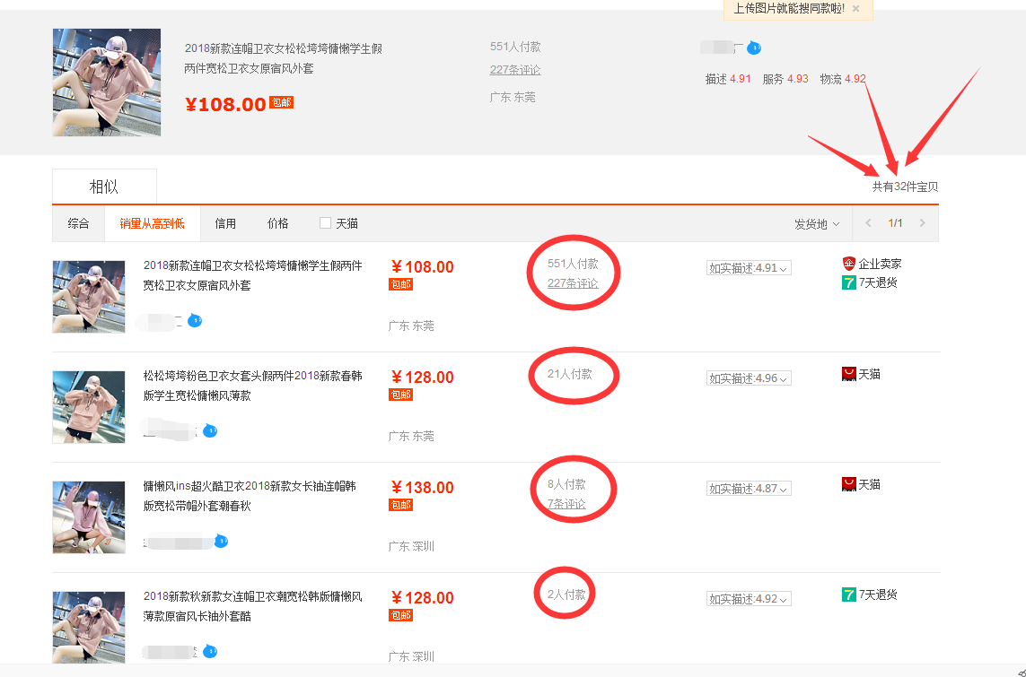 上图,可以看出一共32个同款,但是卖的好的却只有一家(一般不会超过3家,除非大爆款。)这是为什么呢?